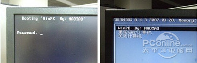 2、启动电脑后,会要求输入启动U盘的密码,也就是前文在制作这个启动U盘时设置的密码。当输入正确的密码后,即可看到一个选择菜单,选择“WinPE By:MAOTAO”。