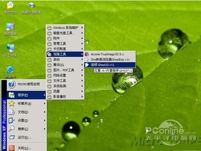8、接着启动另外一个WinPE自带的软件诺顿Ghost。用它来把系统的ghost镜像恢复到之前被格式化的电脑的C盘里。