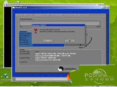 10、前面都选择好之后,会弹出一个对话框问是否要将指定的GHO镜像恢复到电脑的C盘去,点击yes就可以。